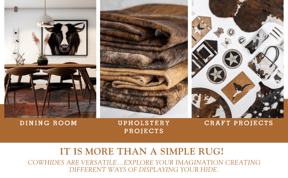 - Authentic Cowhide Luxury Rug: Made from 100% high-quality leather, these ethically sourced rugs from various regions bring a natural and sophisticated charm to your home.
